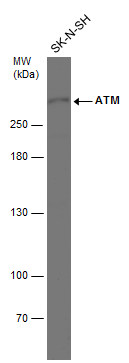 Whole cell extract (30 ug) was separated by 5% SDS-PAGE, and the membrane was blotted with ATM antibody [2C1] (3310) diluted at 1:1000.