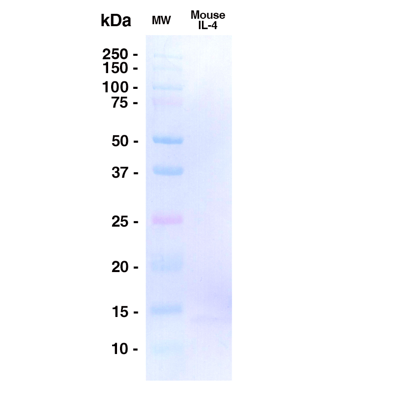 Antibody DetailsProduct DetailsReactive Species Mouse Host Species Rat Immunogen Partially Purified Native Mouse IL-4 Product Concentration 0.5 mg/ml Formulation This purified antibody is formulated in 0.01 M phosphate buffered saline (150 mM NaCl) PBS pH 7.4, 1% BSA and 0.09% sodium azide as a preservative. Storage and Handling This purified antibody is stable when stored at 2-8°C. Do not freeze. Country of Origin USA Shipping Next Day 2-8°C RRIDAB_2830374 Applications and Recommended Usage? Quality Tested by Leinco ELISAThis antibody is useful as the capture antibody in a sandwich ELISA. The suggested coating concentration is 0.5-2.0 μg/ml. Titration of the reagent is recommended for optimal performance for each application. Additional Applications Reported In Literature ? ICC IHC IP Each investigator should determine their own optimal working dilution for specific applications. See directions on lot specific datasheets, as information may periodically change. DescriptionDescriptionSpecificity Clone 11B11 recognizes an epitope on mouse IL-4. Background IL-4 antibody, 11B11, recognizes mouse IL-4, also known as B-cell differentiation factor (BCDF) and B-cell stimulatory factor (BSF1). IL-4 is a pleiotropic 20 kDa cytokine secreted by T helper 2 cells (Th2) cells, natural killer T (NKT) cells, mast cells, eosinophils, and basophils1,2. IL-4 signaling through the IL-4 receptor alpha chain (IL-4Ra) induces the differentiation of naive T cells to Th2 cells3,4 and stimulates B cell differentiation, proliferation, and class switching to IgG1 and IgE isotypes5. In addition, IL-4 is implicated in normal wound healing6,7 and airway inflammation in patients with asthma8. Antigen Distribution IL-4 is secreted by Th2 cells, NKT cells, mast cells, eosinophils, and basophils. Matched Pair Clone 11B11 can be used as the capture antibody in a sandwich ELISA or ELISPOT, using biotinylated clone BVD6-24G2 for detection. PubMed NCBI Gene Bank ID UniProt.org Research Area Immunology . Other Molecules References & Citations1. Yoshimoto T & Paul WE. (1994) J Exp Med. 179(4):1285–95 2. Kipnis J., at al. (2012) J Immunol. 189(9):4213-4219 3. Groth B., et al. (1992) J Exp Med. 176:1091–8 4. Murphy KM., et al. (1992) Proc Natl Acad Sci USA. 89:6065–9 5. Paul WE., et al. (1999) Annual Rev Immunol. 17:701-38 6. Maquart FX., et al. (2000) Lab Invest. 80(8):1337-43 7. Godeau, G., et al. (2000) Lab Invest. 80,1337–1343 8. Steinke JW & Borish L. (2001) Respir Res. 2(2):66-70 Technical ProtocolsCertificate of Analysis |