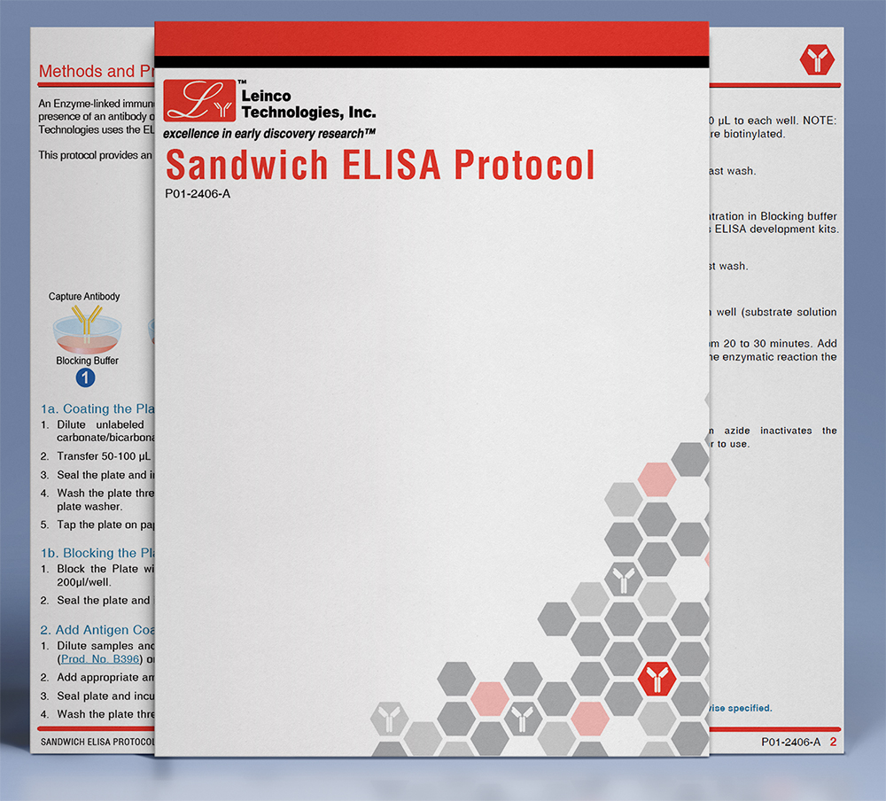 - Dilute samples and standards to desired concentrations using Leinco Technologies Blocking buffer (Prod. No. B396) or appropriate diluent.
